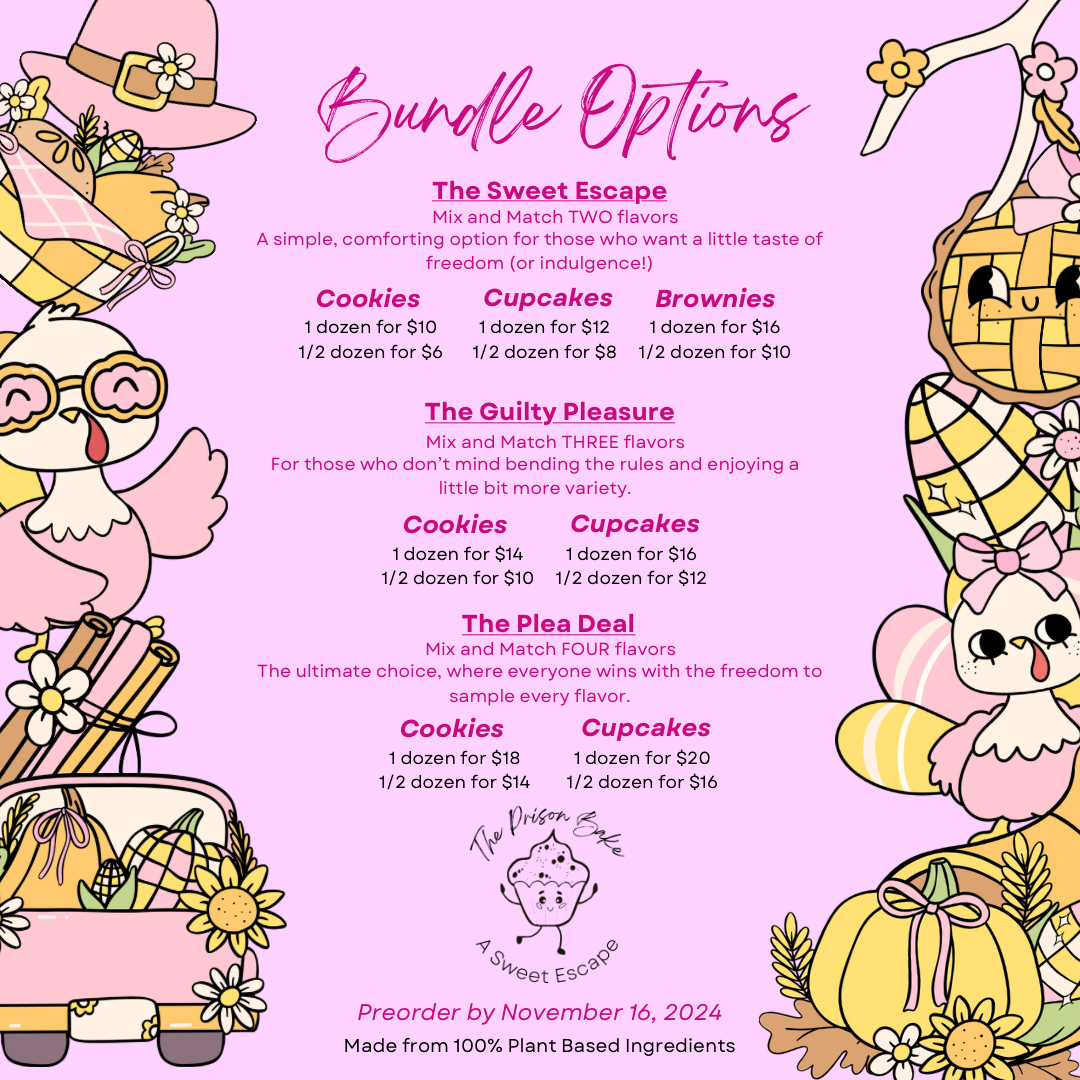 Important: Each bundle applies to one type of dessert at a time. This means you can’t mix cookies with brownies or cupcakes in the same bundle—but you can mix flavors within each type to build your perfect box!